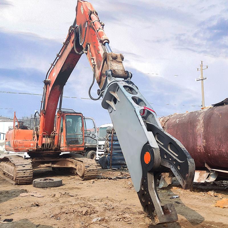 Гідравлічні ножиці(Гідравлічні плоскогубці): Ефективно розрізані сталеві бруски, Н-промені, балки, колони та інші металеві компоненти з сильною силою зсуву, широко застосовуються при знесенні сталевої конструкції, обробці сталевої сталі, демонтажу мостів та інших умовах праці. За ефективністю23 тонна екскаваторРозмахування гідравлічного зсуву на місці знесення, скорочуючи 12 сталевих брусків на хвилину, лежить еволюція гідравлічного зсуву з "об'ємного інструменту" до "інтелектуального леза" за останнє десятиліття.