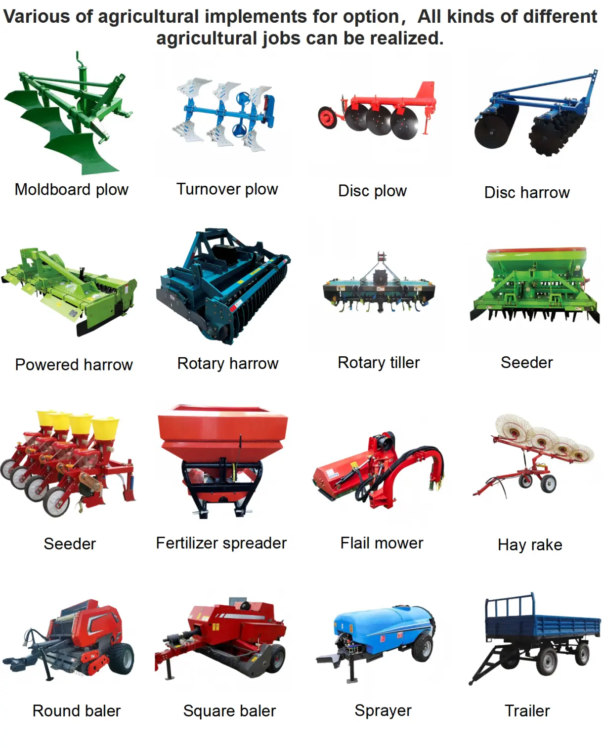 У сучасній системі сільськогосподарського виробництва трактори, як основне енергетичне обладнання, можуть повністю розкрити свій потенціал лише за умови наукового та відповідного поєднання супутніхсільськогосподарські знаряддя. Набір сільськогосподарських знарядь, який відповідає реальним виробничим потребам, може не тільки значно підвищити ефективність всього процесу землеробства, посіву та обробки полів, але й зменшити енерговитрати та знос обладнання, створюючи тим самим більший прибуток для фермерів.